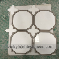 Mosaico de mármol de carrara, popular patrón de flor de hoja de chorro de agua